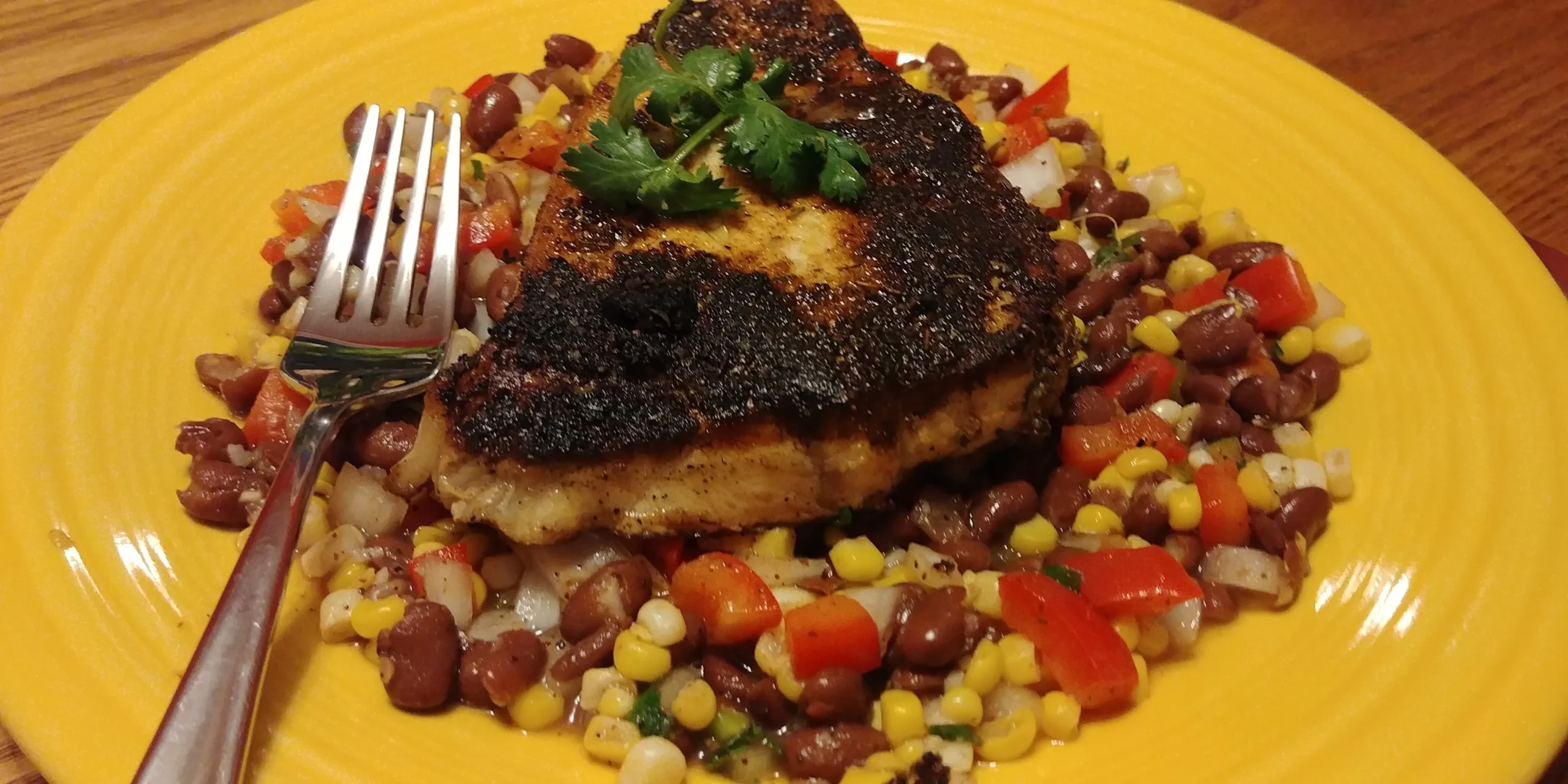 Blackened Swordfish with Sweet Potato Crab Hash